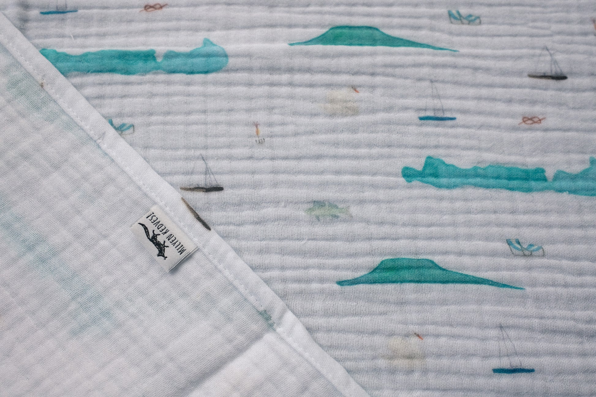 A mi muszlinunk egy háromrétegű muszlin anyag, sokkal vastagabb, mint a megszokott pelusok. Emellett légies, jól szellőzik és gyorsan szárad, a minták bababarát, vízbázisú festékkel készülnek.