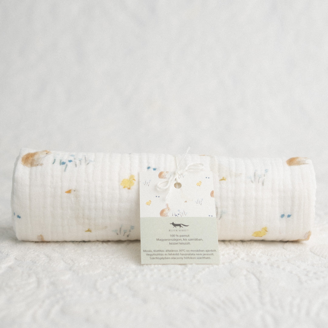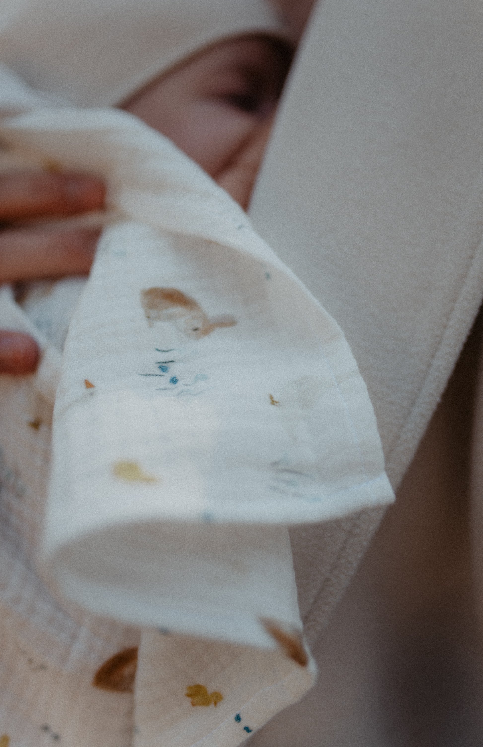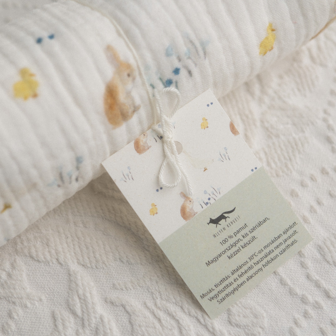 A Milyen Kedves! textil pelusok nem csak szépek, hanem meglepően praktikusak is: lehet belőlük vállkendő büfizéshez, takaró a babakocsiban, nyálkendő, árnyékoló vagy a baba kedvenc alvókája. 100% légáteresztő muszlinból készülnek, amit finom, kézzel festett mintáink díszítenek – így minden darab egy kis természetet visz a hétköznapokba.