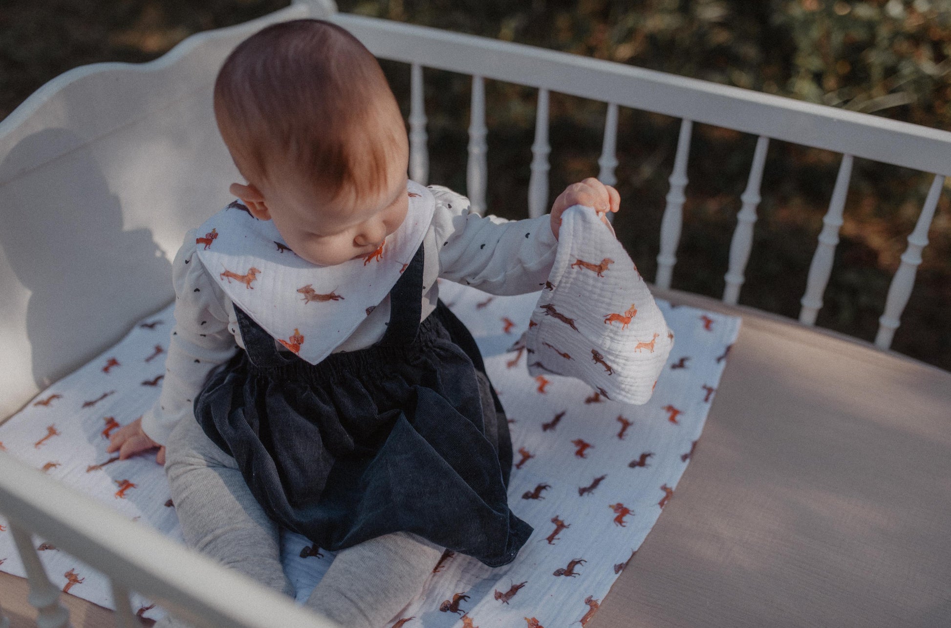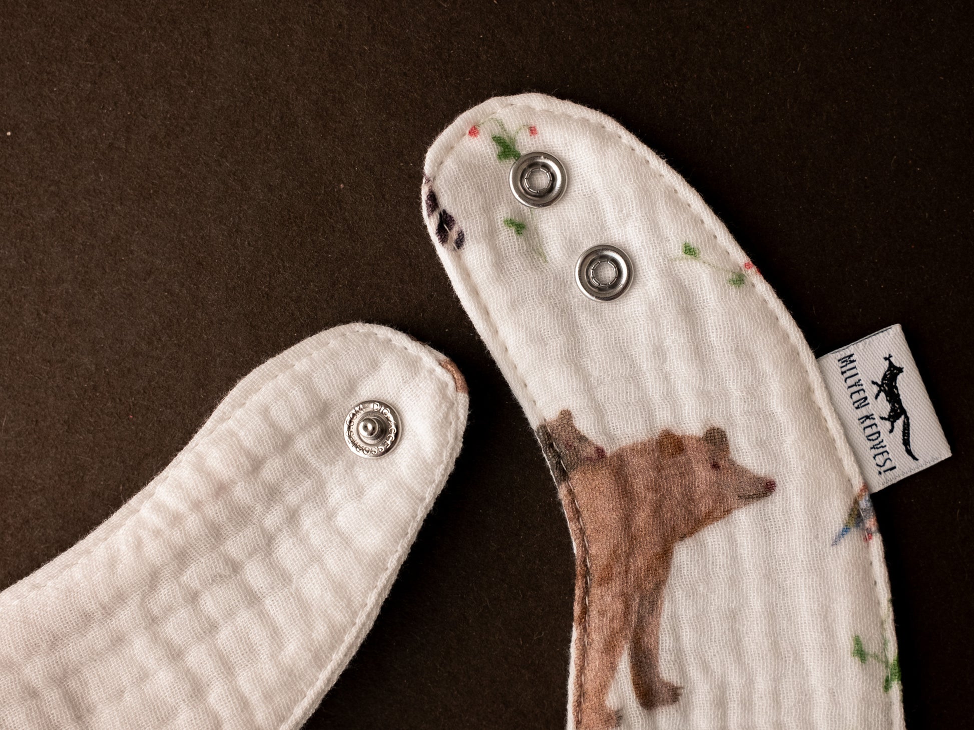 Ez egy praktikus és stílusos kiegészítő, amit a baba nyakába teszel. Felszívja a nedvességet fogzáskor vagy bukás után, így nem kell folyton ruhát cserélni. Közben pedig csinosít is.