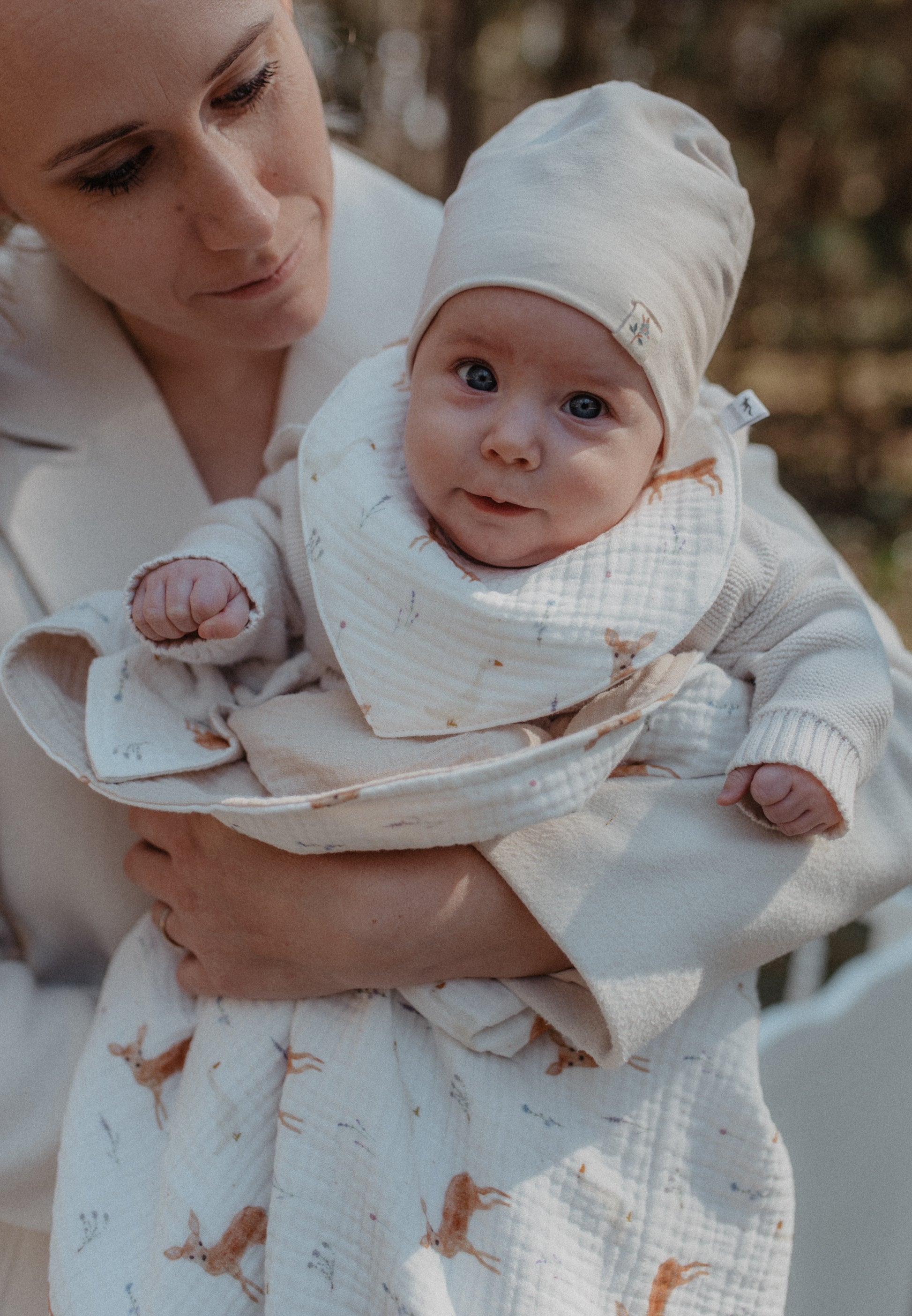 A Milyen Kedves! nyálkendők olyanok, mintha egy erdei sétából készült volna egy kis háromszögnyi textil szeretet.