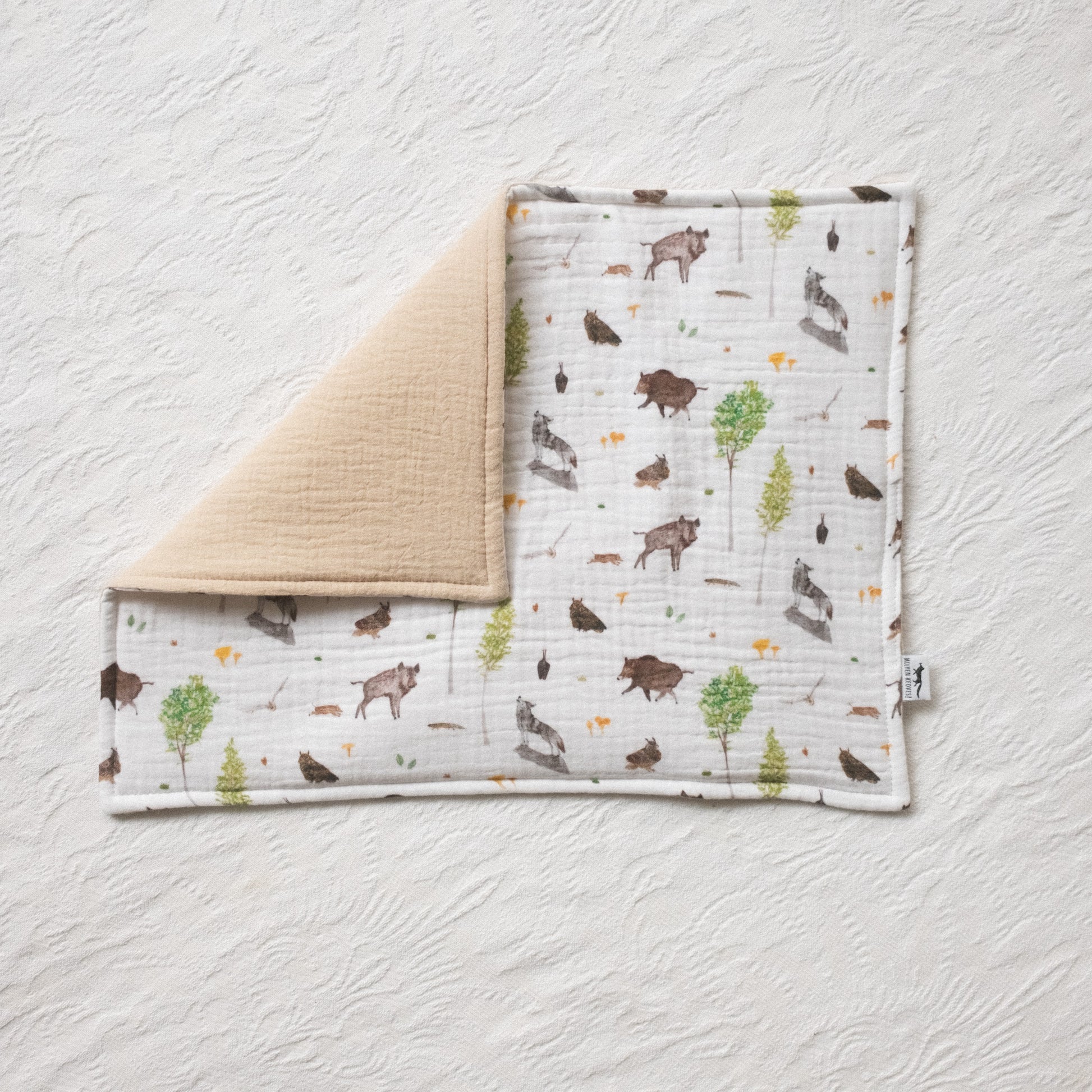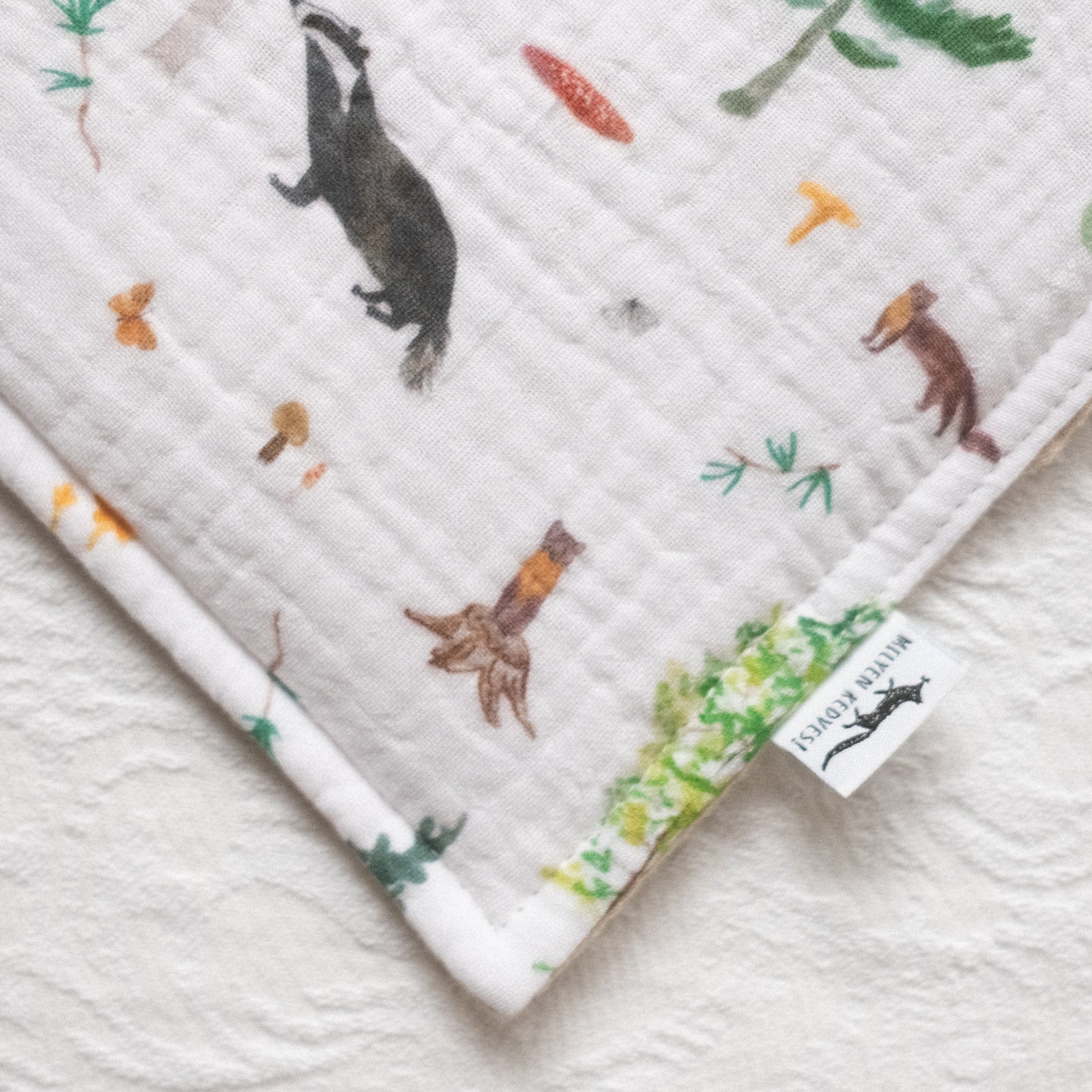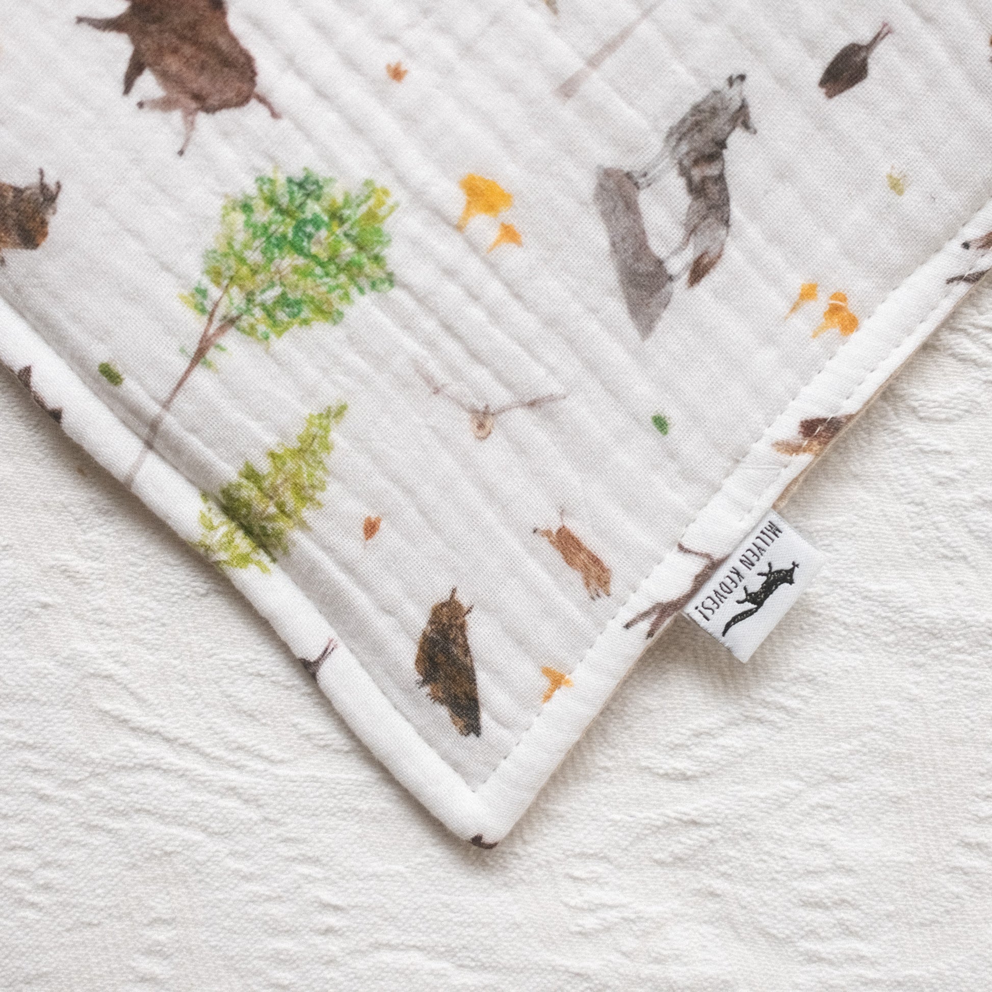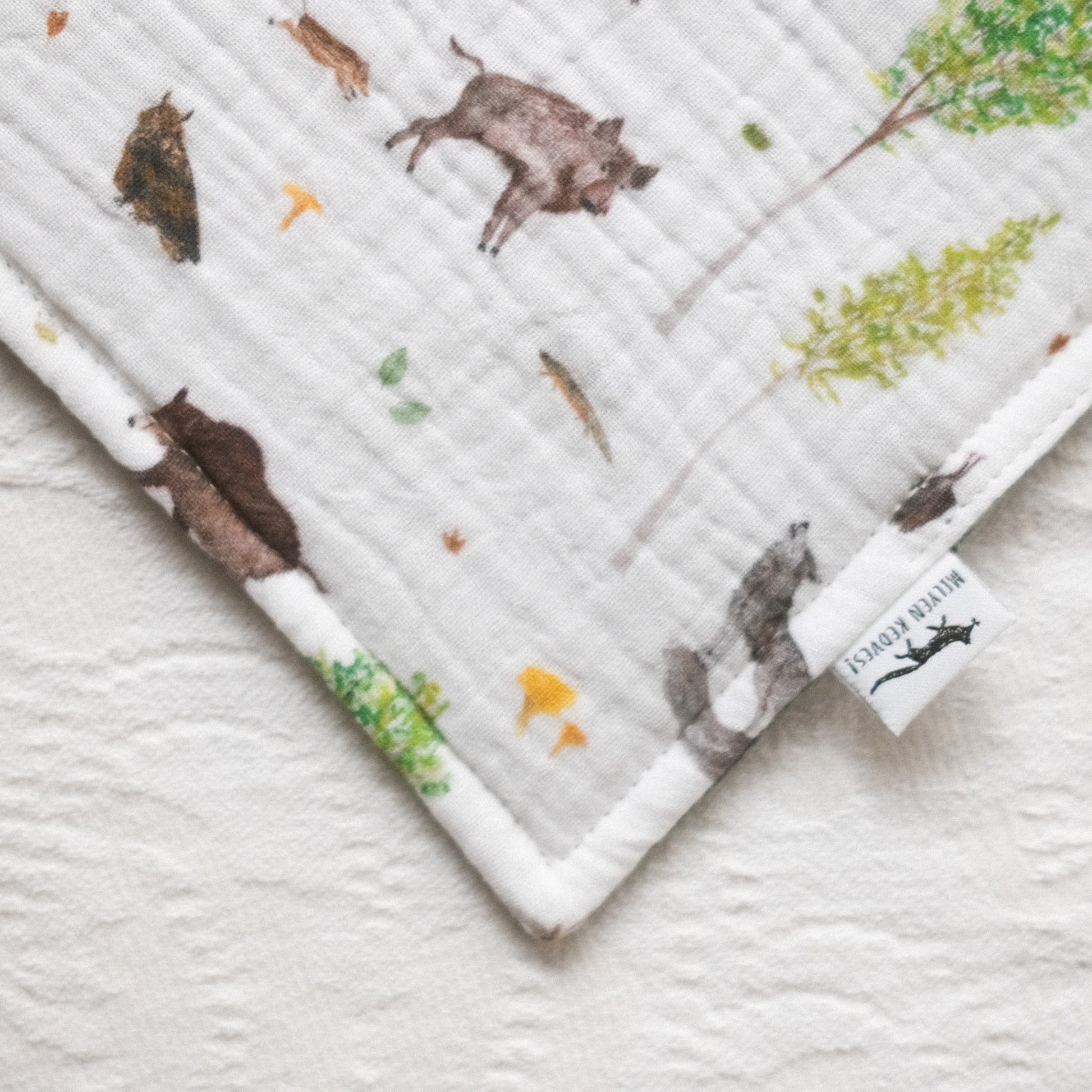 - Anyag: 100% légáteresztő muszlin, belül vékony flíz réteggel a puhaságért.