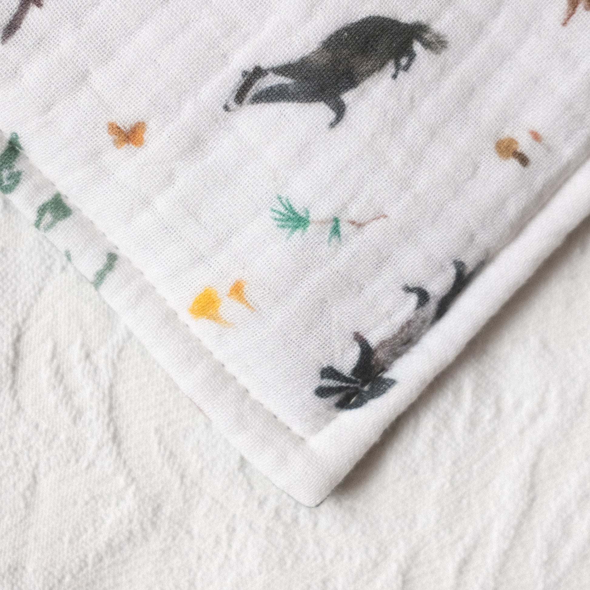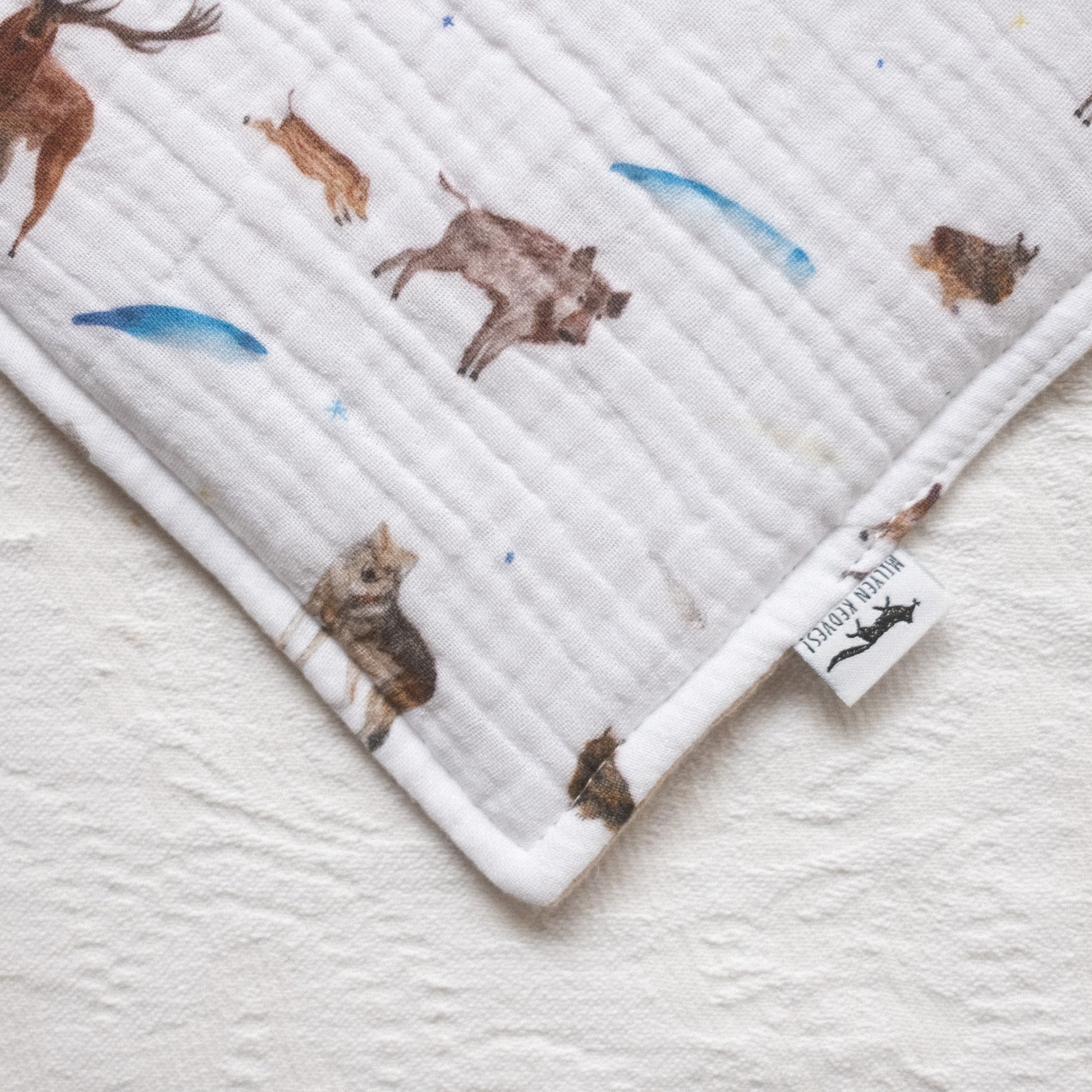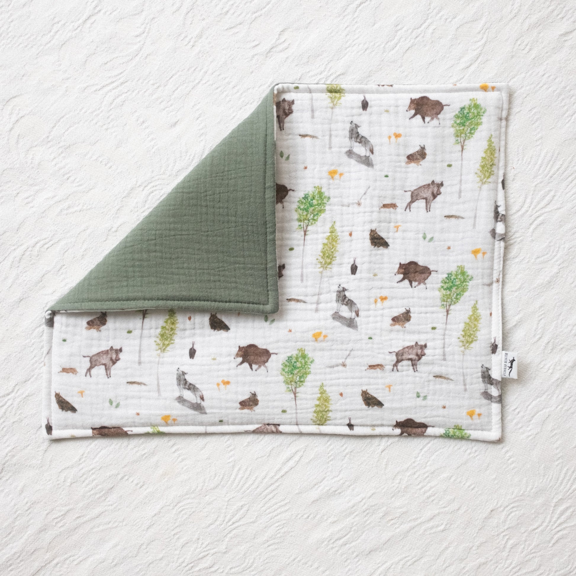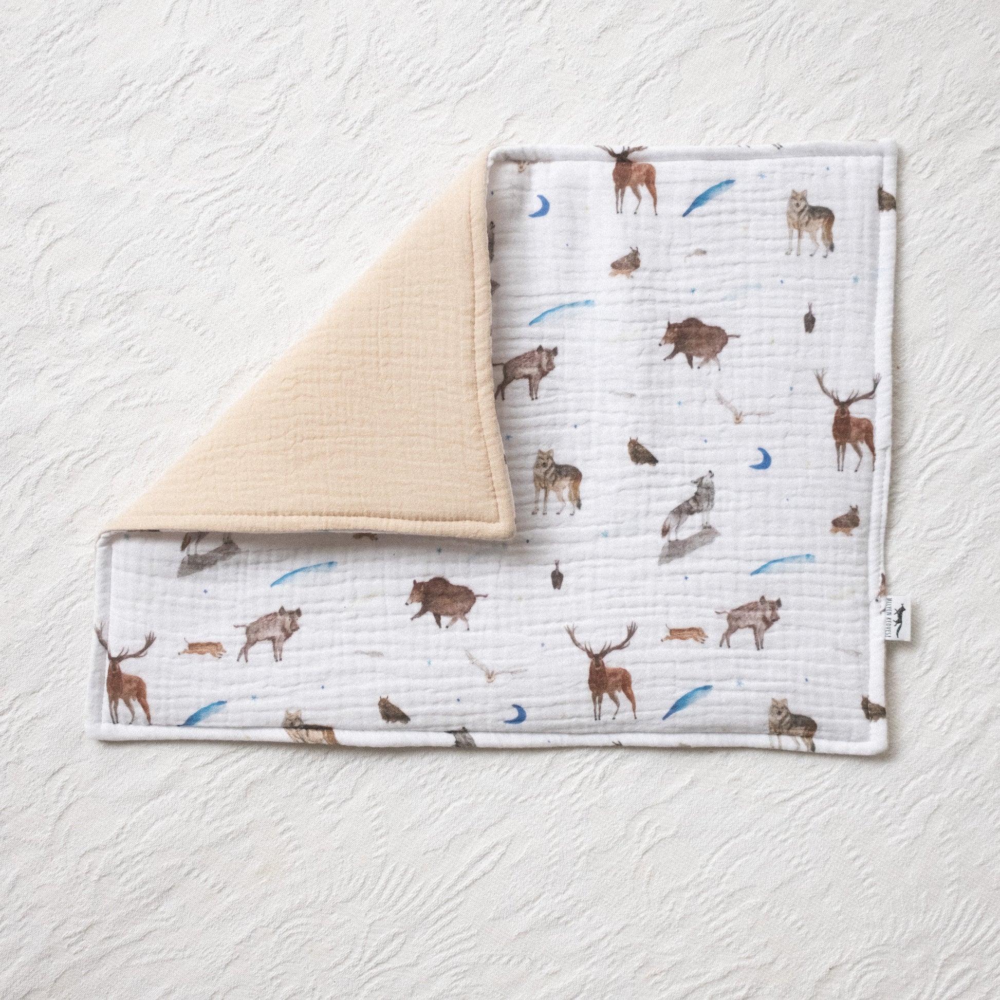 - Anyag: 100% légáteresztő muszlin, belül vékony flíz réteggel a puhaságért.