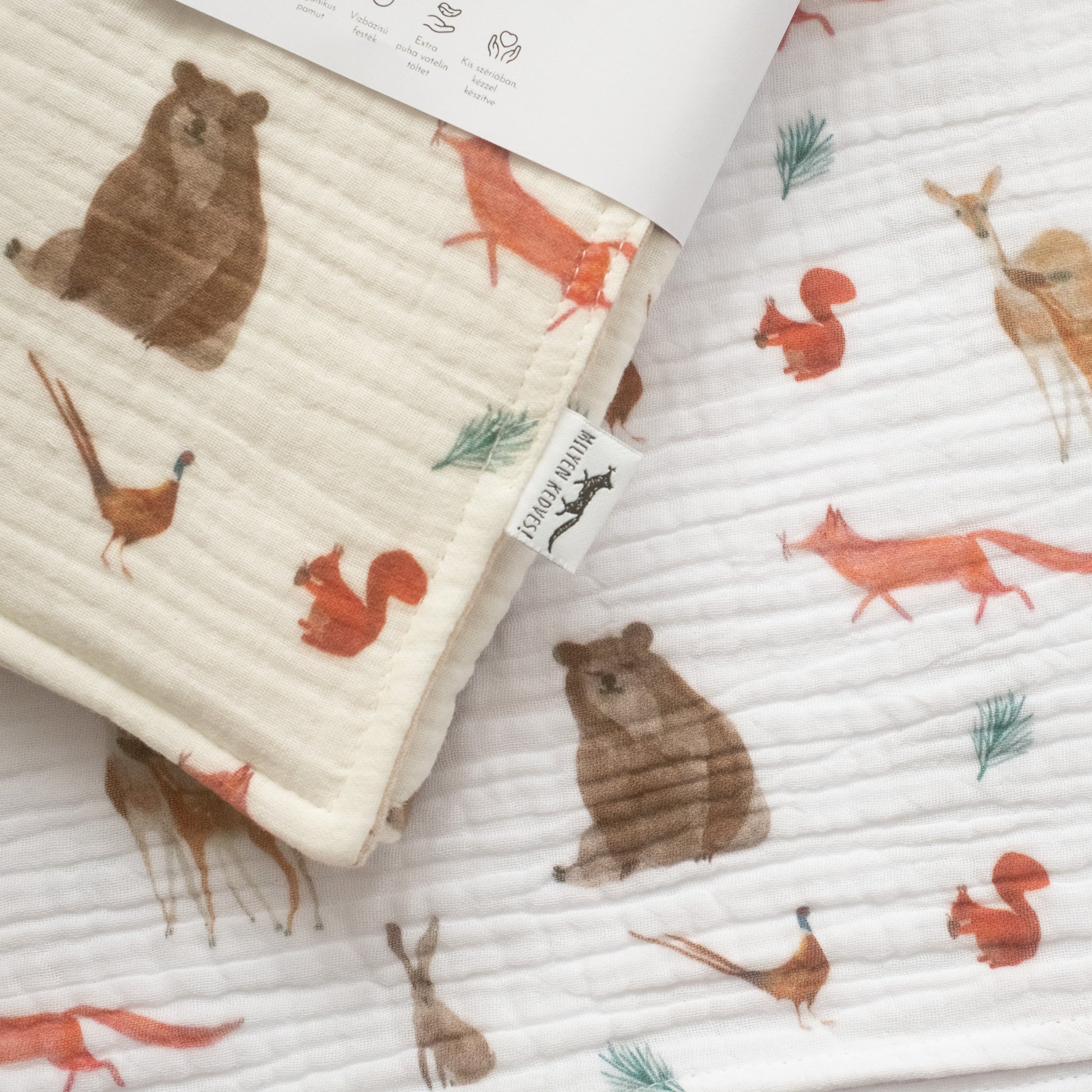 • Anyag: 100% légáteresztő muszlin, belül vékony flíz réteggel a puhaságért.