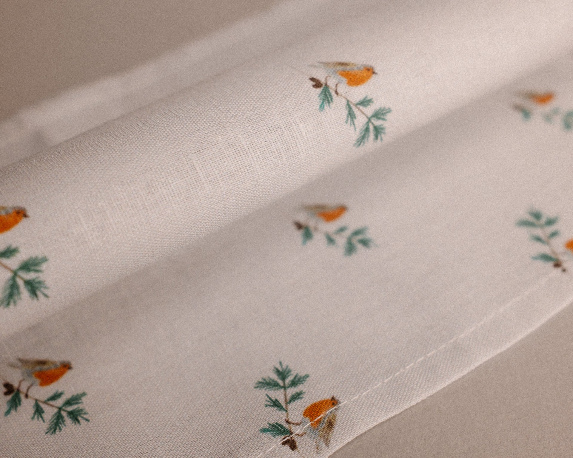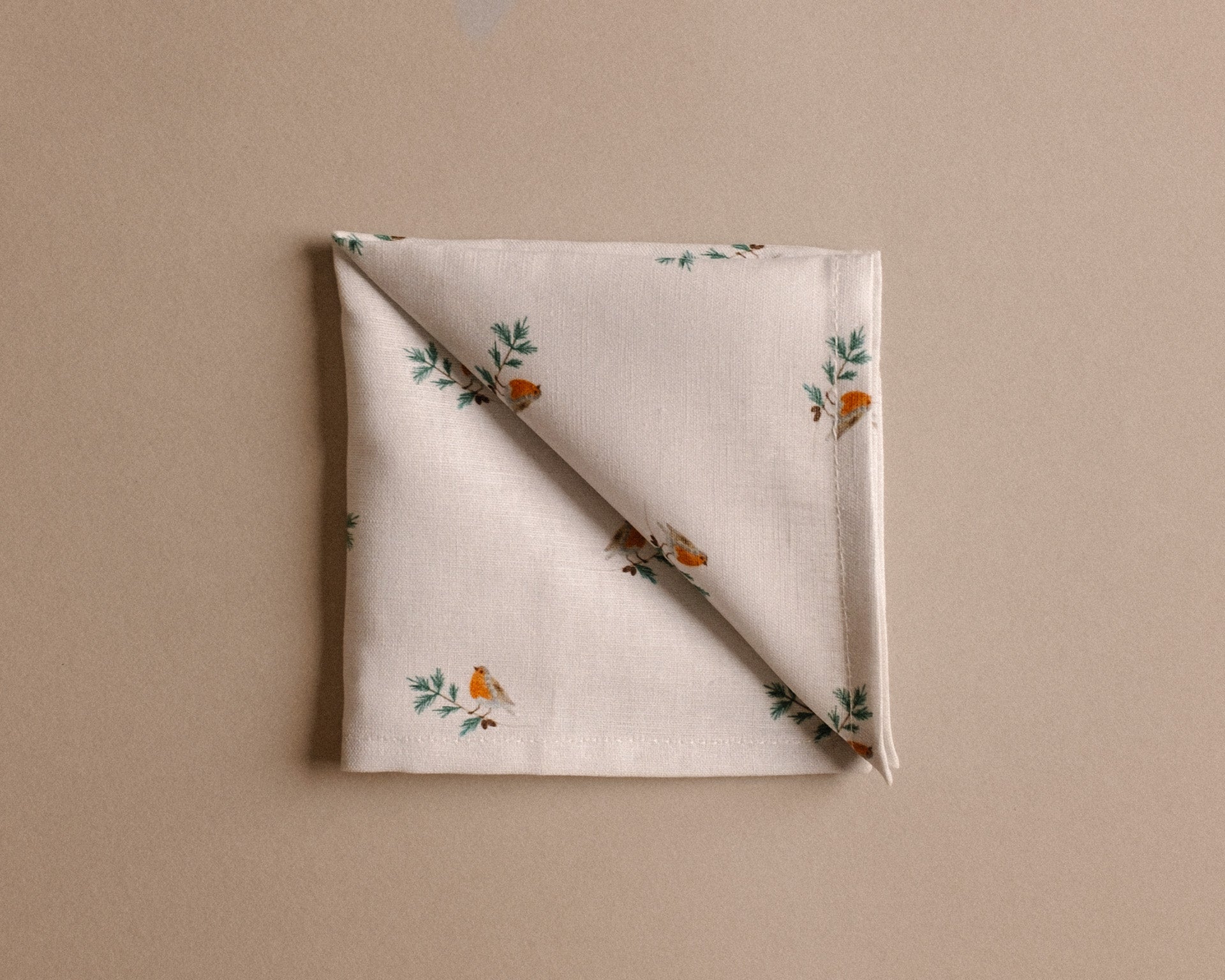 A vörösbegyekkel díszített szalvéta letisztult és finom stílusú, amely bármilyen ünnepi asztal dísze lehet.