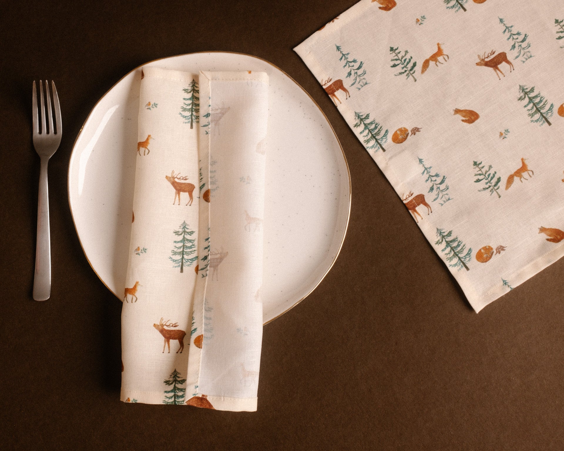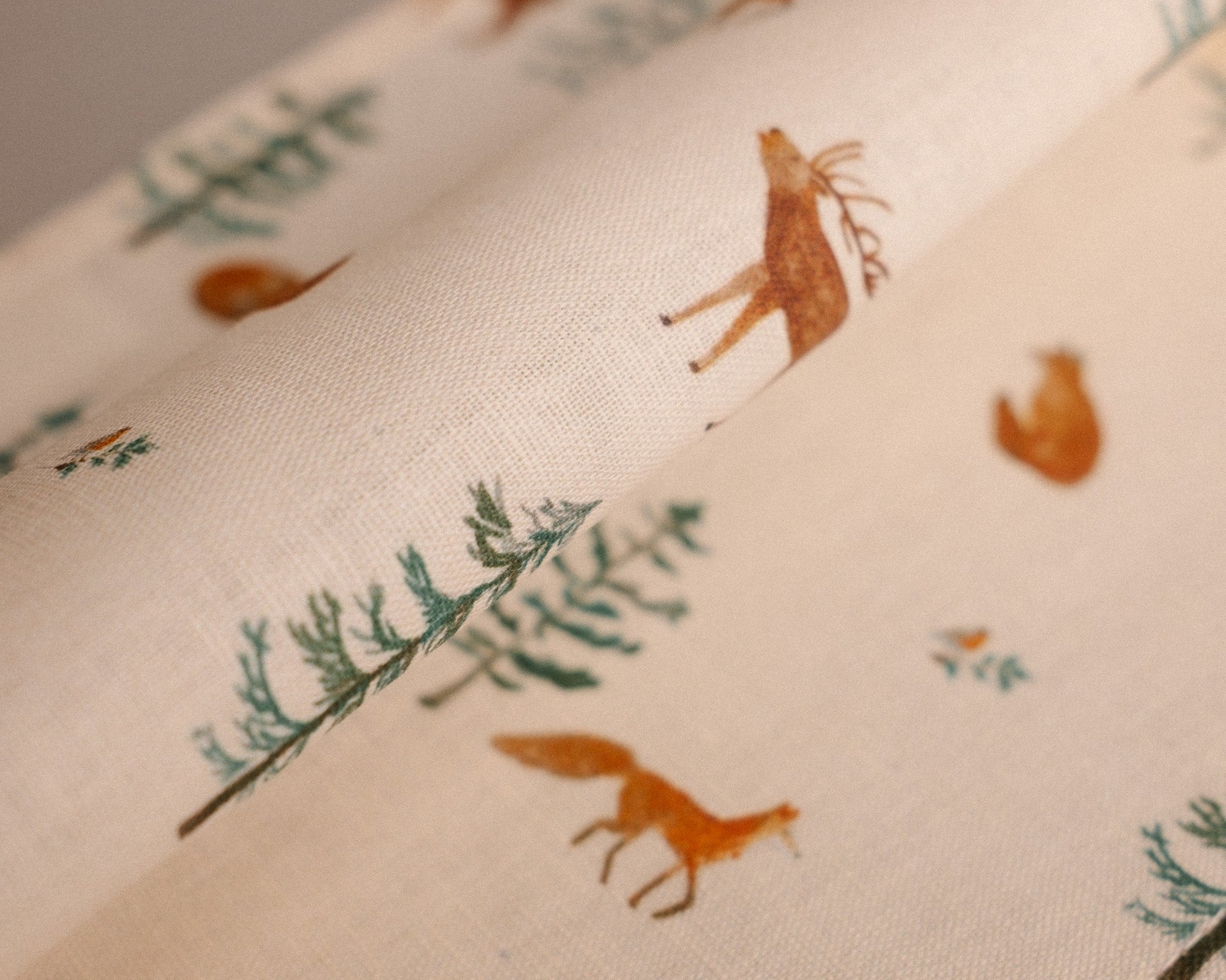 Ez a minta a szarvasokkal, rókákkal és fenyőfákkal igazi erdei varázst hoz az otthonodba.