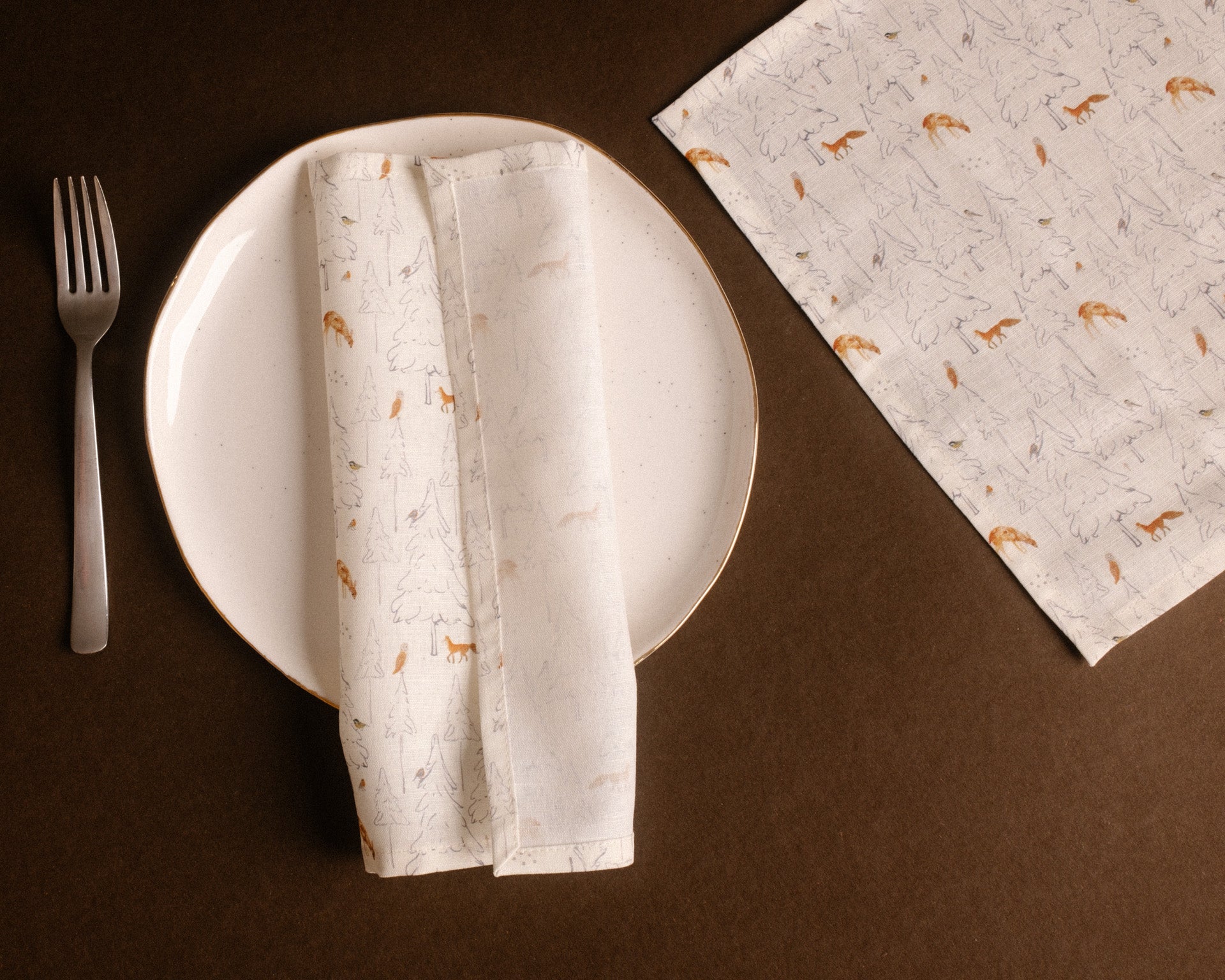 Ha szereted a téli erdők meghitt hangulatát, ez a rókákkal, madarakkal és fenyőkkel teli minta tökéletes választás lehet számodra.