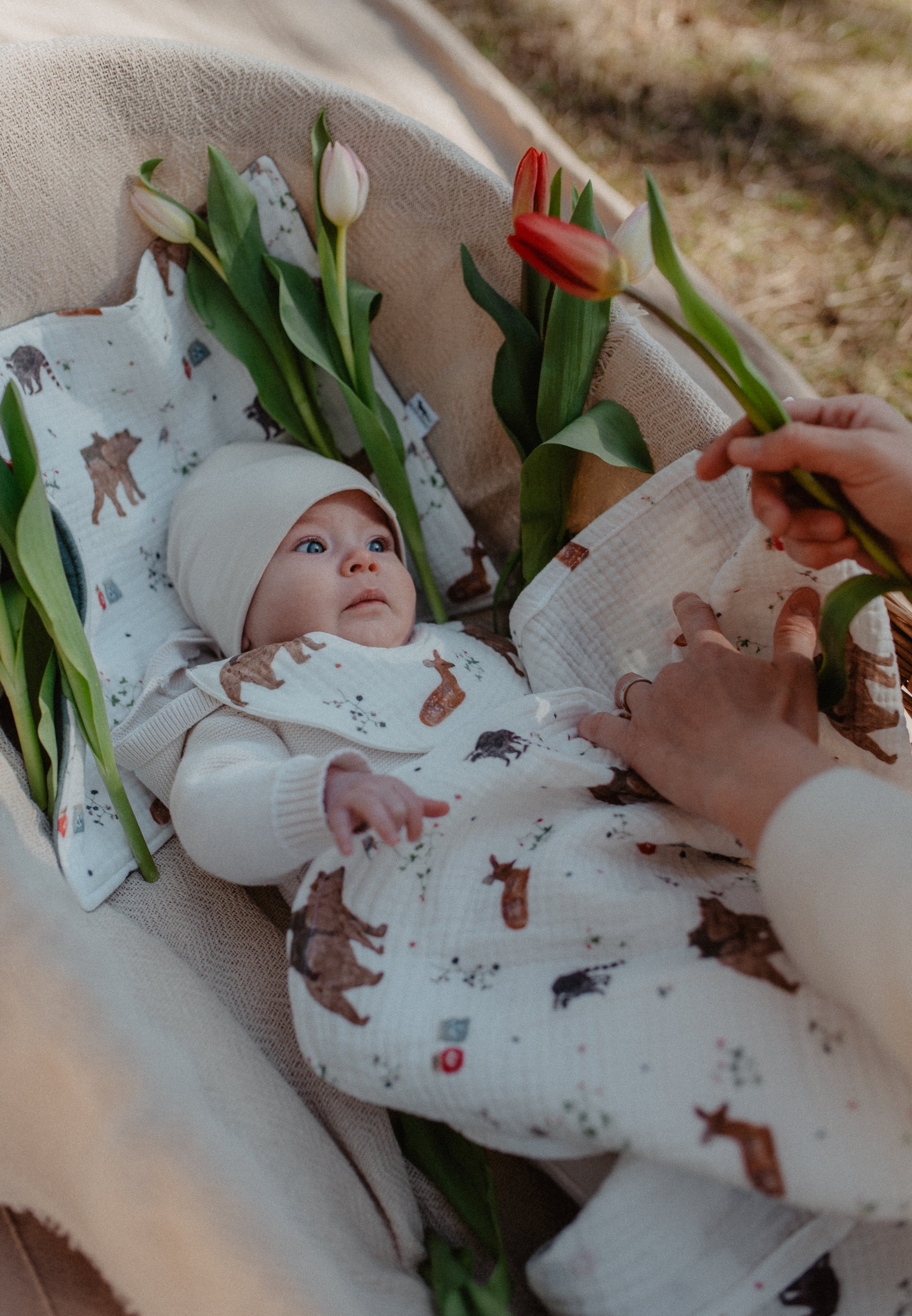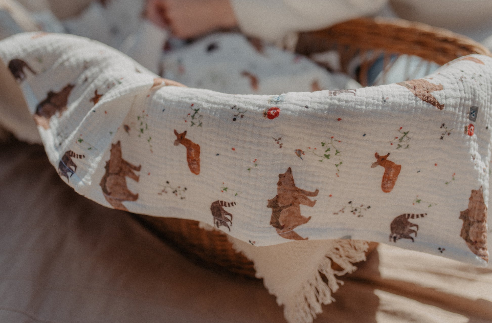 A Milyen Kedves! textil pelusok nem csak szépek, hanem meglepően praktikusak is: lehet belőlük vállkendő büfizéshez, takaró a babakocsiban, nyálkendő, árnyékoló vagy a baba kedvenc alvókája. 100% légáteresztő muszlinból készülnek, amit finom, kézzel festett mintáink díszítenek – így minden darab egy kis természetet visz a hétköznapokba.