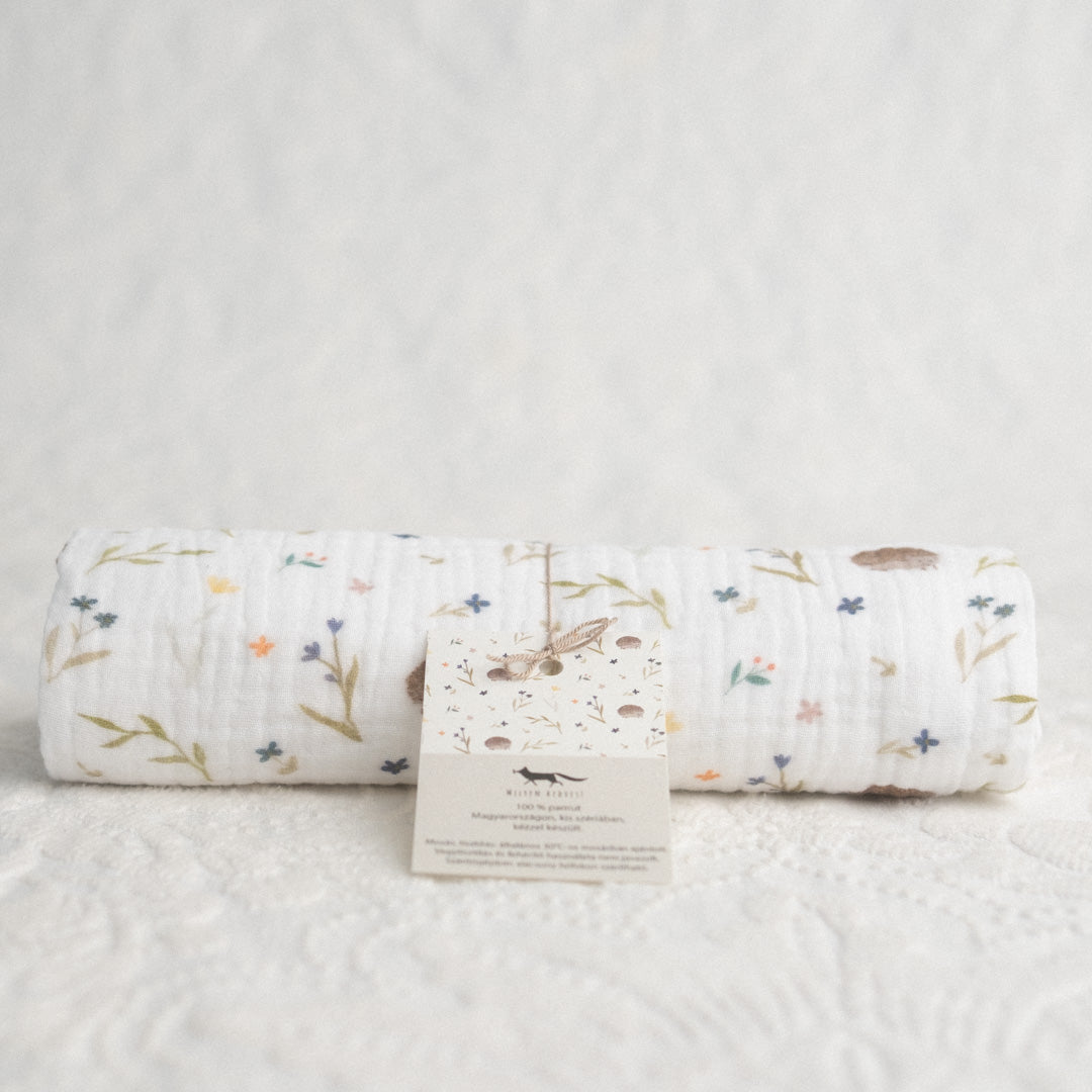 A Milyen Kedves! textil pelusok nem csak szépek, hanem meglepően praktikusak is: lehet belőlük vállkendő büfizéshez, takaró a babakocsiban, nyálkendő, árnyékoló vagy a baba kedvenc alvókája. 100% légáteresztő muszlinból készülnek, amit finom, kézzel festett mintáink díszítenek – így minden darab egy kis természetet visz a hétköznapokba.