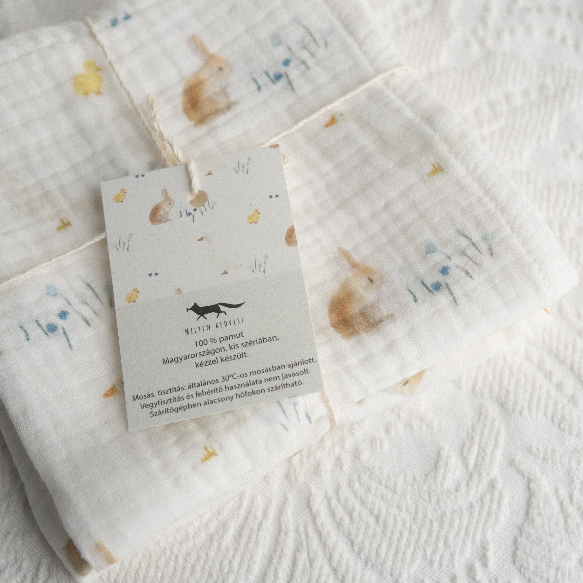 100% organikus pamut muszlin, a legpuhább triplagéz anyag.